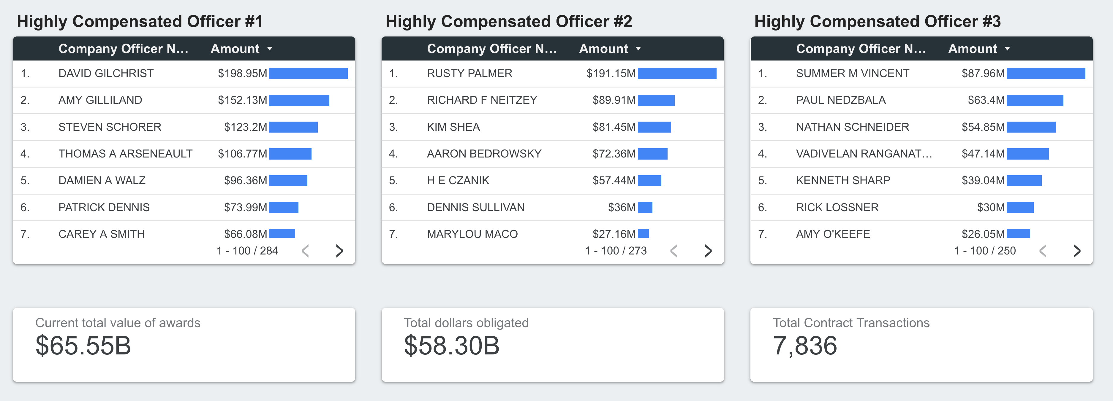 Size of Awards: Sort contracts by dollar amount to surface both large awards and smaller contracts that may draw little attention individually but represent significant spending when viewed together.